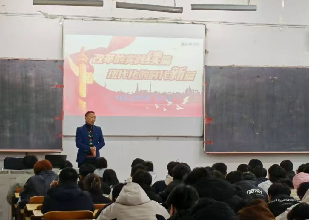 黄志东联系当前国内外形势,客观生动地阐释了什么是新质生产力以及发展新质生产力的重要性,带领同学们进一步了解发展新质生产力,可以促进绿色技术国际交流与合作,助力应对气候变化等全球性挑战的意义。刘广春结合贯彻落实党的二十届三中全会精神,以“改革的实践续篇,现代化的时代新篇”为主题,表示全面深化改革始终坚持从理论上正本清源,从制度上立柱架梁,从实践上有力推进,同时希望同学们面对进一步全面深化改革的时代浪潮,能够坚定理想信念,为国家发展贡献自己的一份力量。