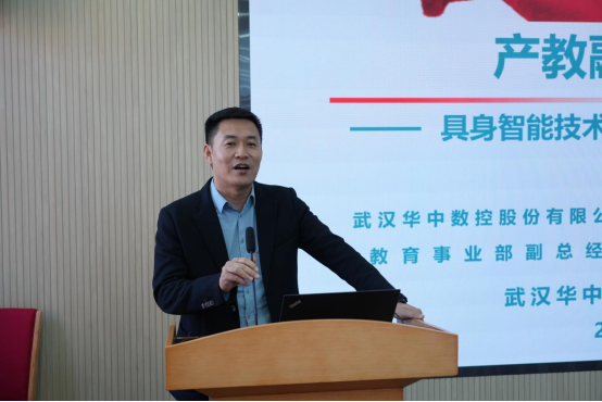 在企业技术宣讲环节,武汉华中数控股份有限公司教育事业部副总经理王小军以《具身智能技术创新实践,赋能智能制造人才培养》为题,介绍了企业如何将前沿技术融入教育实践,为智能制造人才培养提供解决方案。通用技术沈阳机床东北大区区域总经理孙念明则围绕《聚焦企业发展与人才需求新方向》,从企业用人实际出发,分析了当前产业升级对人才能力结构提出的新要求,为高校人才培养提供了宝贵的市场视角。