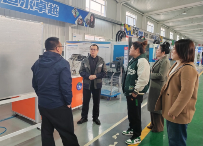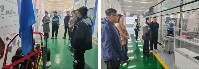 调研团队在沈阳城市建设学院机械工程学院院长助理于联周的带领下,深入工程实训中心、专业实验室参观学习,于联周详细介绍了实训中心、实验室的设备配置和教学管理模式,双方就实验室的安全管理、仪器维护等方面进行了深入交流。