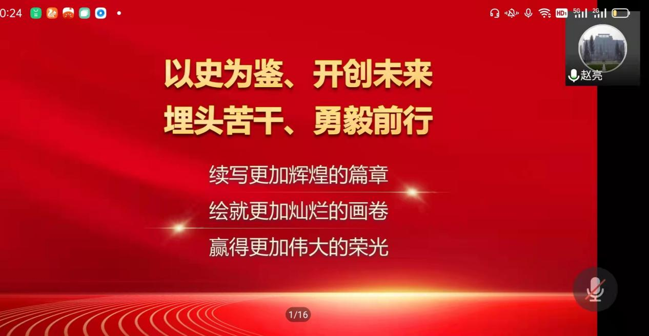 课程最后,赵亮院长鼓励同学们要“以史为鉴、开创未来,埋头苦干、勇毅前行”,更加深入了解中国共产党百年奋斗历程,不断从党的奋斗史中汲取智慧和力量,用党的奋斗历程和伟大成就鼓舞斗志、明确方向,不断坚定理想信念,练就过硬本领,增强做中国人的志气、骨气、底气,不负时代,不负韶华,以实现中华民族伟大复兴为己任,做共产主义远大理想和中国特色社会主义共同理想的坚定信仰者和忠实实践者。