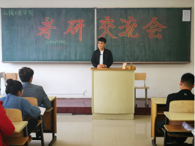 经验交流会邀请了机电BG13的唐海潮、郭菁菁,汽车BG131班的刘安硕、李志博。他们都参加了2017年的硕士研究生考试。有的是成绩优异、有的是调剂成功,也有的是因在学校选择、跨专业等因素考虑不全面导致最终没能考取硕士研究生。他们结合自己的切身经历分别讲述了网上报名、复习规划、考研所要经历的问题、复习怎样的书籍,及考研所要具备的心理素质等。 四位同学在讲述完自己的感悟和经验后,又与在场的学弟、学妹们进行了一些积极的交流,对考研中的疑问一一进行解答,现场气氛活跃。