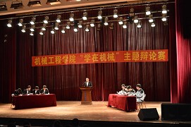 2014年5月4日19时,大学生活动中心内热闹非凡,由机械工程学院“学在机械”主题辩论赛决赛在此隆重举行,比赛特邀机械工程学院团委书记谢飞老师、分团委副书记、学生会主席及学生会各部部 长担任评委,机械工程学院大一、大二各班同学观看了这次比赛。