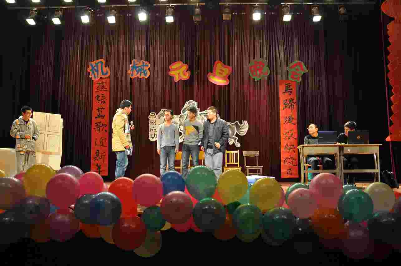 2013年12月27日机械工程学院在大学生活动中心举办2014年元旦晚会,出席本次晚会的领导和老师有机械工程学院党总支书记赵亮、学生工作处副处长刘广春、机械工程学院党总支副书记于红斌及全体辅导员老师,机械学院在校的31个班级观看了本次晚会。