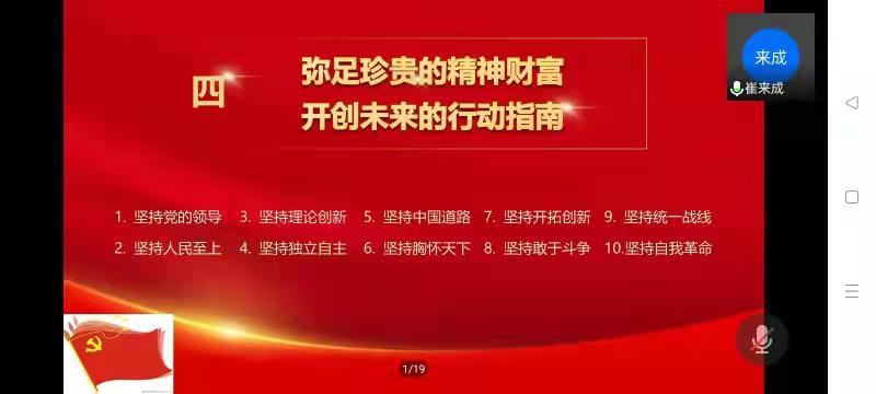 崔书记从镌刻史册的伟大飞跃,不可逆转的复兴进程;气象万千的伟大时代,浓墨重彩的崭新篇章;永葆初心的大党担当,伟大光荣的历史贡献;弥足珍贵的精神财富,开创未来的行动指南等四部分讲述了党百年奋斗从胜利走向胜利的伟大历史进程、为国家和民族建立的伟大历史功绩,讲述了党百年奋斗的历史意义和党百年奋斗积累的宝贵历史经验,讲述了新时代的历史性成就和历史性变革,以“十个明确”对习近平新时代中国特色社会主义思想的核心内容作了概括,重点阐述了“十个坚持”是我们党无往不胜的成功密码,也是开创未来的行动指南。