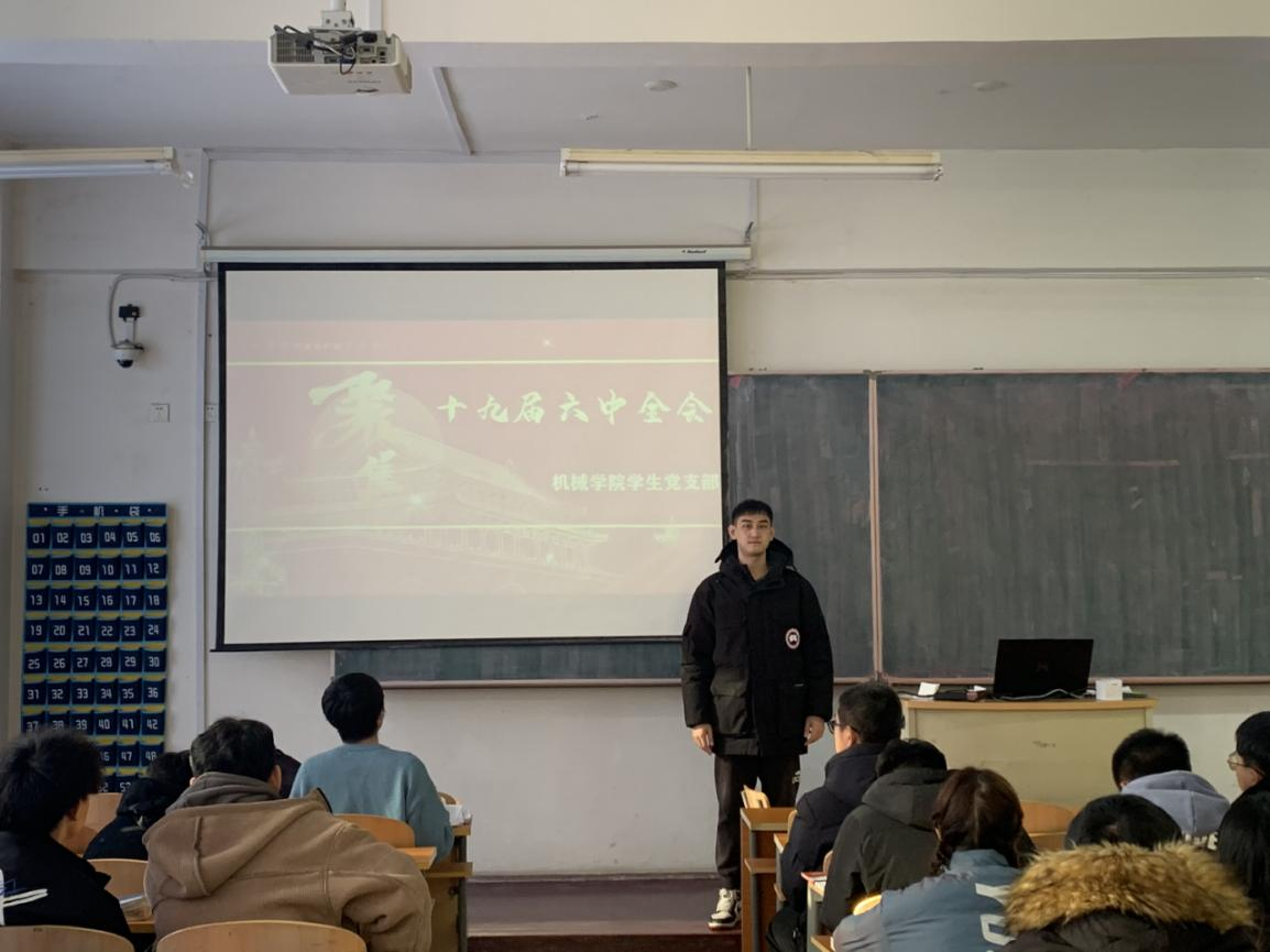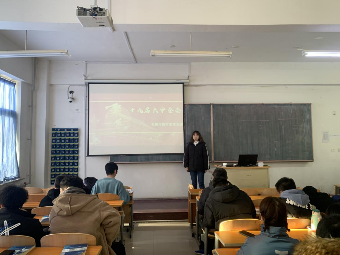 党的十九届六中全会成功召开以来,机械工程学院积极响应号召,为深入学习宣传贯彻党的十九届六中全会精神,切实把全院广大师生的思想和行动统一到全会精神上来。2021年12月17日,机械工程学院于博雅楼三区211开展十九届六中全会精神宣讲报告会。由辅导员谢飞老师和团干部代表贾成龙同学、杨晔琳同学进行宣讲,机械工程学院学生代表参加了本次报告会。