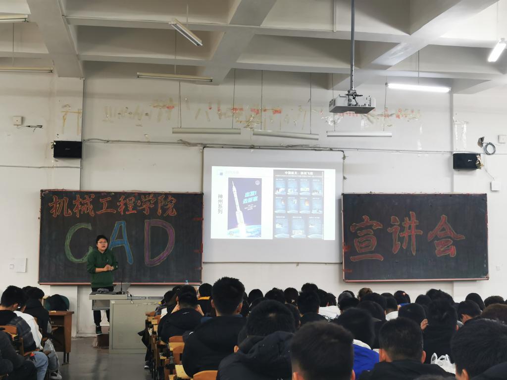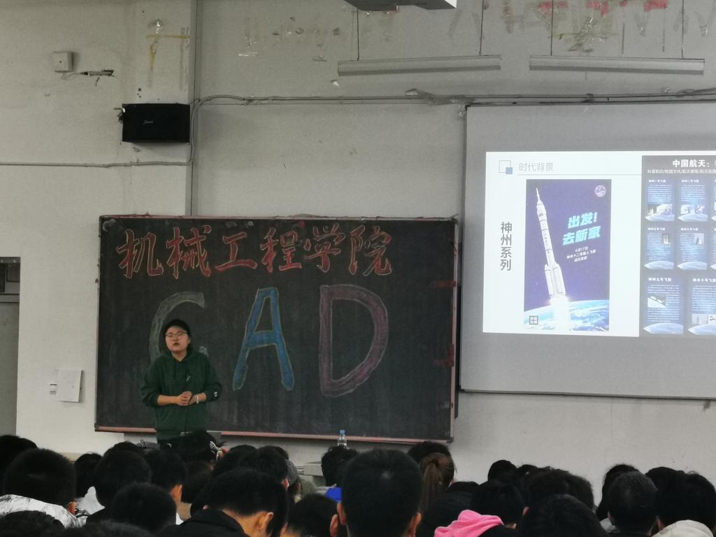 肖萌老师针对CAD从其应用、对于机械专业学生的重要性、CAD功能介绍及作品展示等几个方面进行讲解,她结合绘图大赛和机械创新设计大赛两项机械类专业的重要赛事讲解CAD的重要性,鼓励同学们努力学好CAD,积极参加竞赛,将理论与实践相结合,提升对所学知识的应用能力。