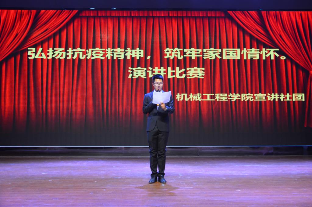 “如画般金秋十月再见,如诗般冬月你好”在这个秋冬更替的季节,为进一步弘扬中国伟大的抗疫精神,增强同学们的防疫知识,提高同学们爱国情怀和民族自豪感。由机械工程学院宣讲团承办的科技文化艺术家之“弘扬抗疫精神,筑牢家国情怀”主题演讲比赛决赛于2020年11月19日下午4点30分在大学生活动中心正式开始,本次比赛的评委有机械工程学院团委书记谢飞老师,机械工程学院学生会主席宋宪伟、副主席董浩、各院系分团委副书记,各院系学生代表观看比赛。