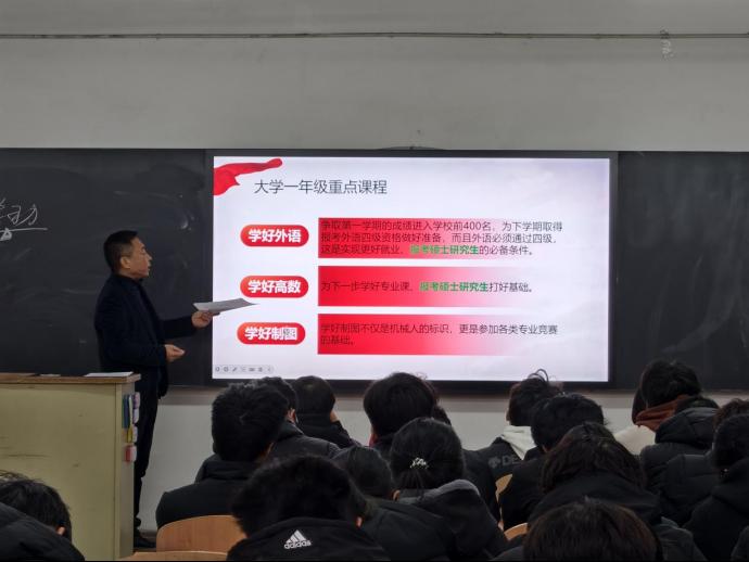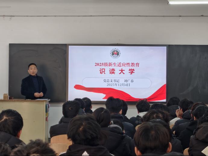 为帮助2025级新生快速适应大学生活、融入校园集体、明确成长方向,12月4日,机械工程学院在博雅楼3区209教室举办了2025级新生适应性教育培训会。学院党总支书记刘广春以“三自修身、三读明智”为核心,为2025级机电普本新生带来了一场兼具思想引领与实践指导的成长分享。