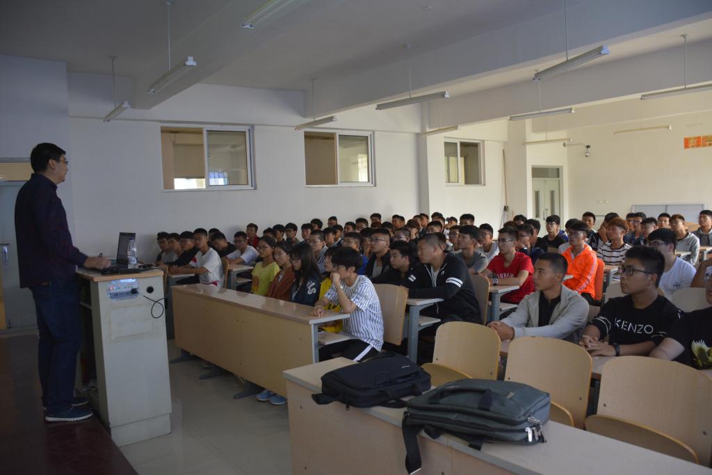 2017年9月3日上午9点,机械学院副院长黄志东为机械设计制造及其自动化专业新生做双百计划专题讲座,主要从专业核心课和职业能力课的引入、中美专家授课方式、创新创业教育以及国际化人才培养等方面介绍双百实验班。学生反响强烈,并踊跃报名,最终共有112名同学报名。