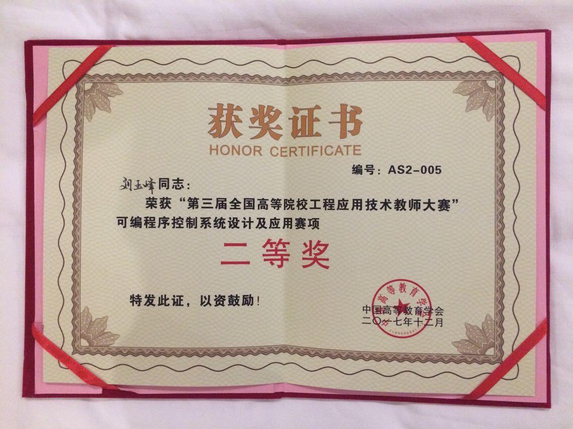 2017年12月17日,历时3天的第三届全国高等院校工程应用技术教师大赛决赛在杭州落下帷幕。本届大赛报名参赛队伍共386支,经过初赛,最终196支参赛队参加决赛,包括清华大学、哈尔滨工业大学、山东大学、西安交通大学及军事院校在内的一共93所高校参加。其中我校机械学院青年教师刘玉峰和杨萃颖分别参加了自动化控制系统设计和数控机床控制技术两个赛项。经过初赛评审和复赛的选拔,两位老师分别获得二等奖和优秀奖。